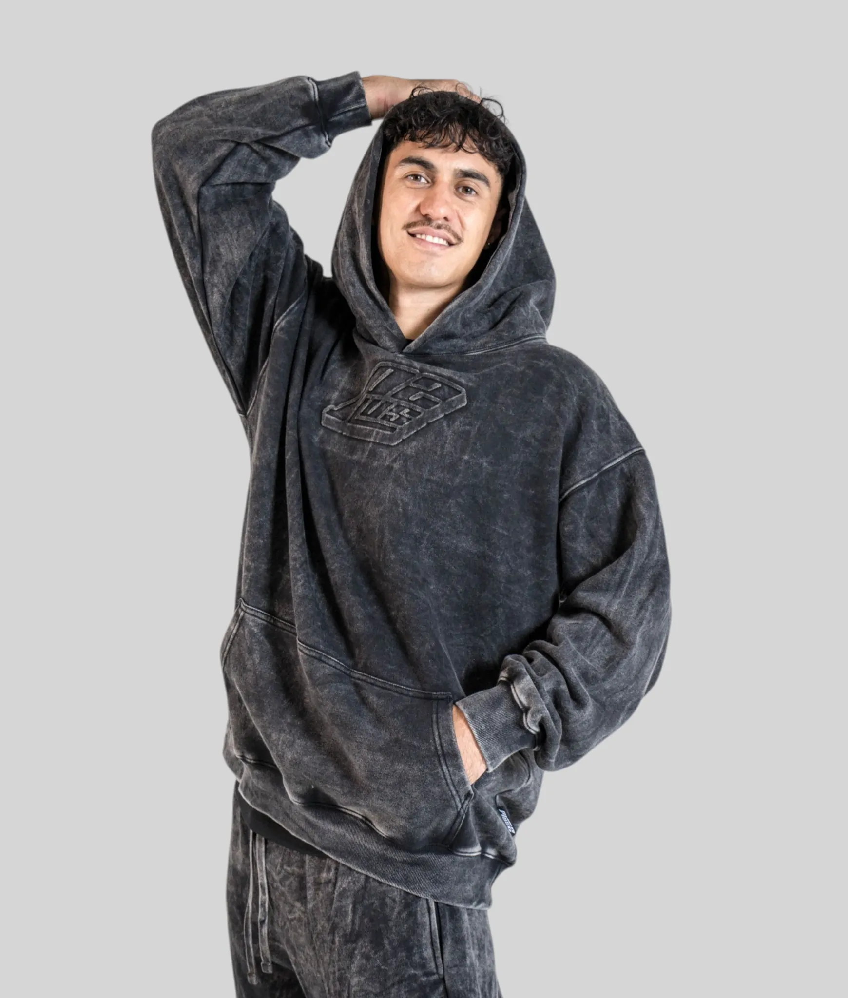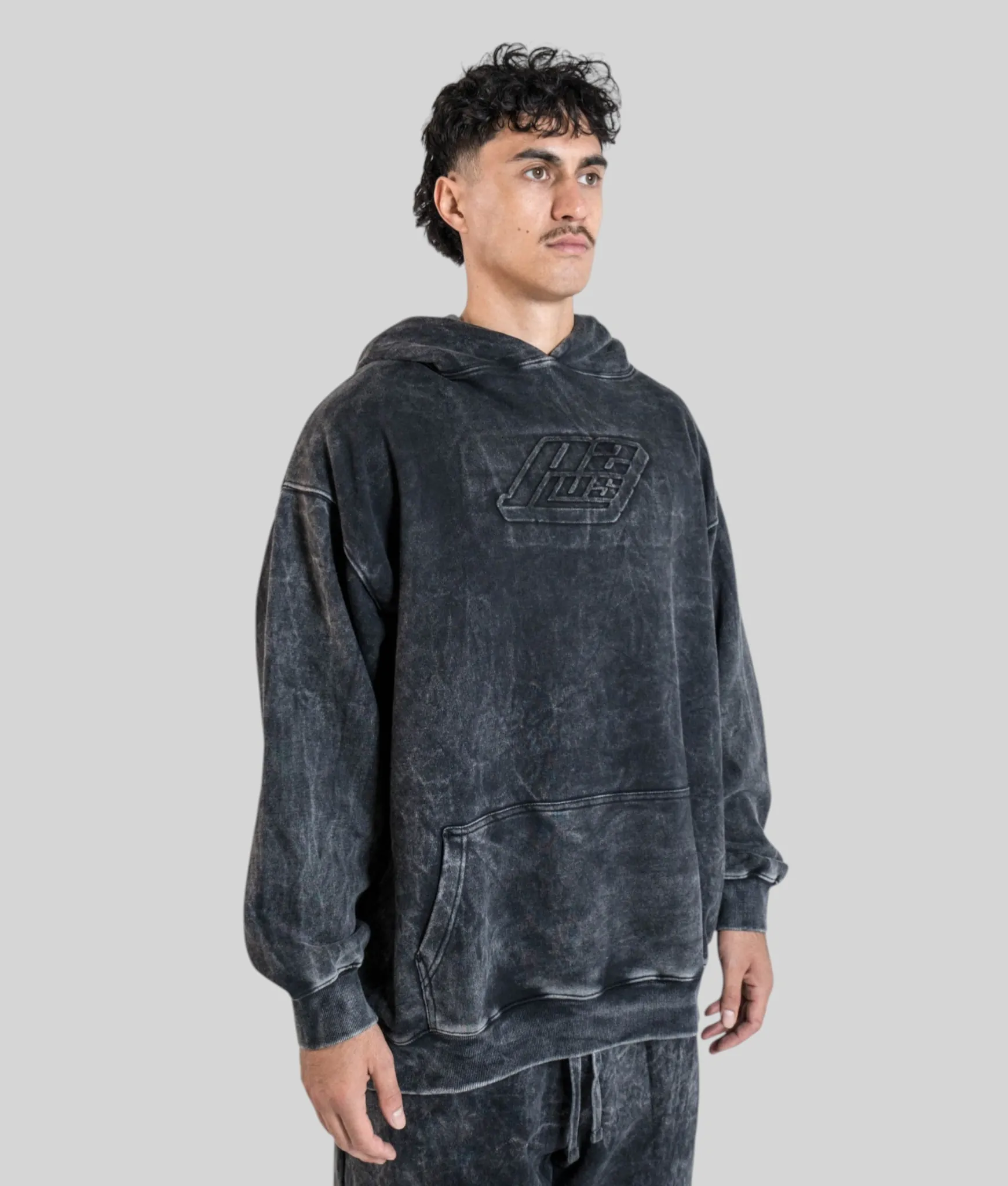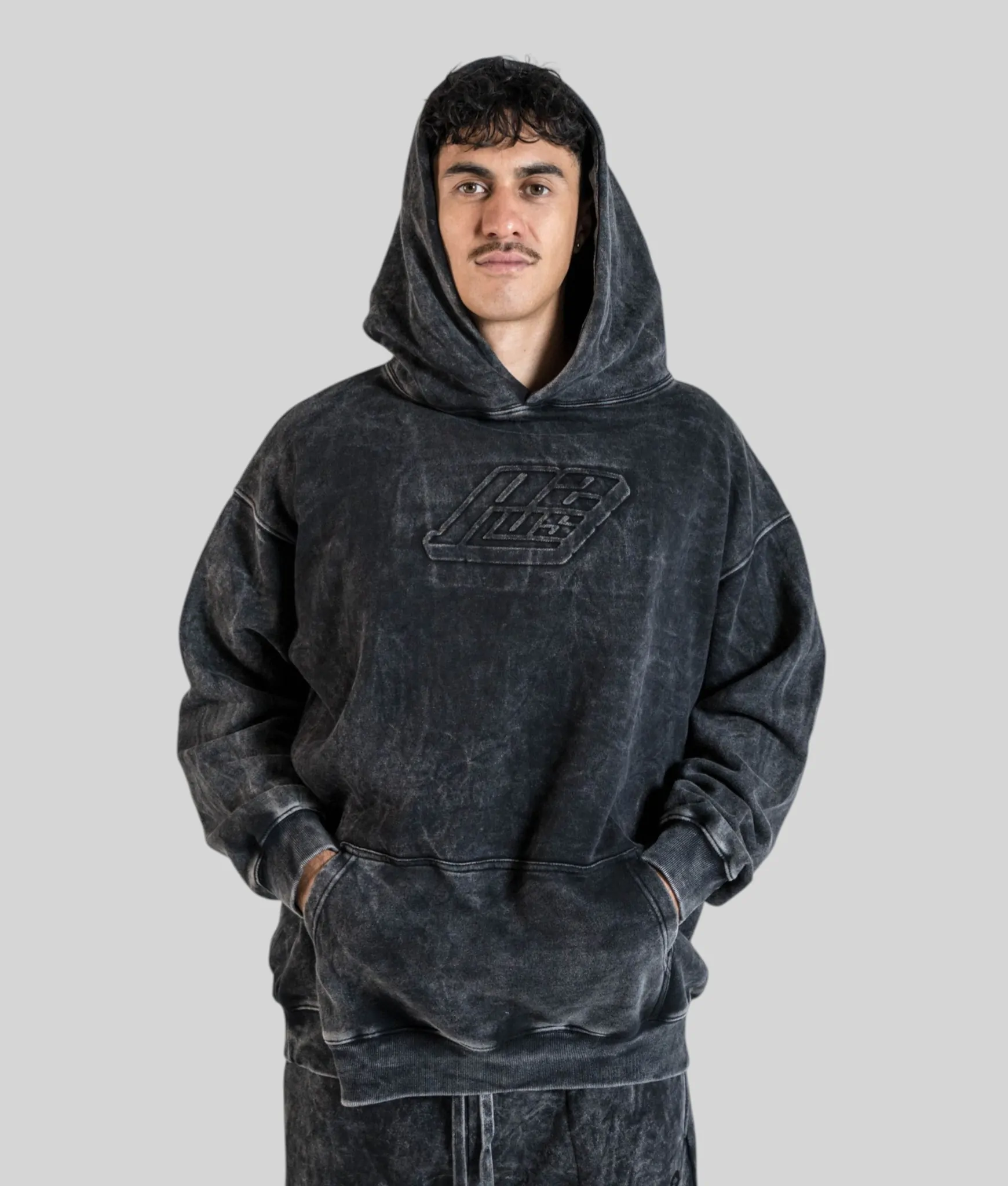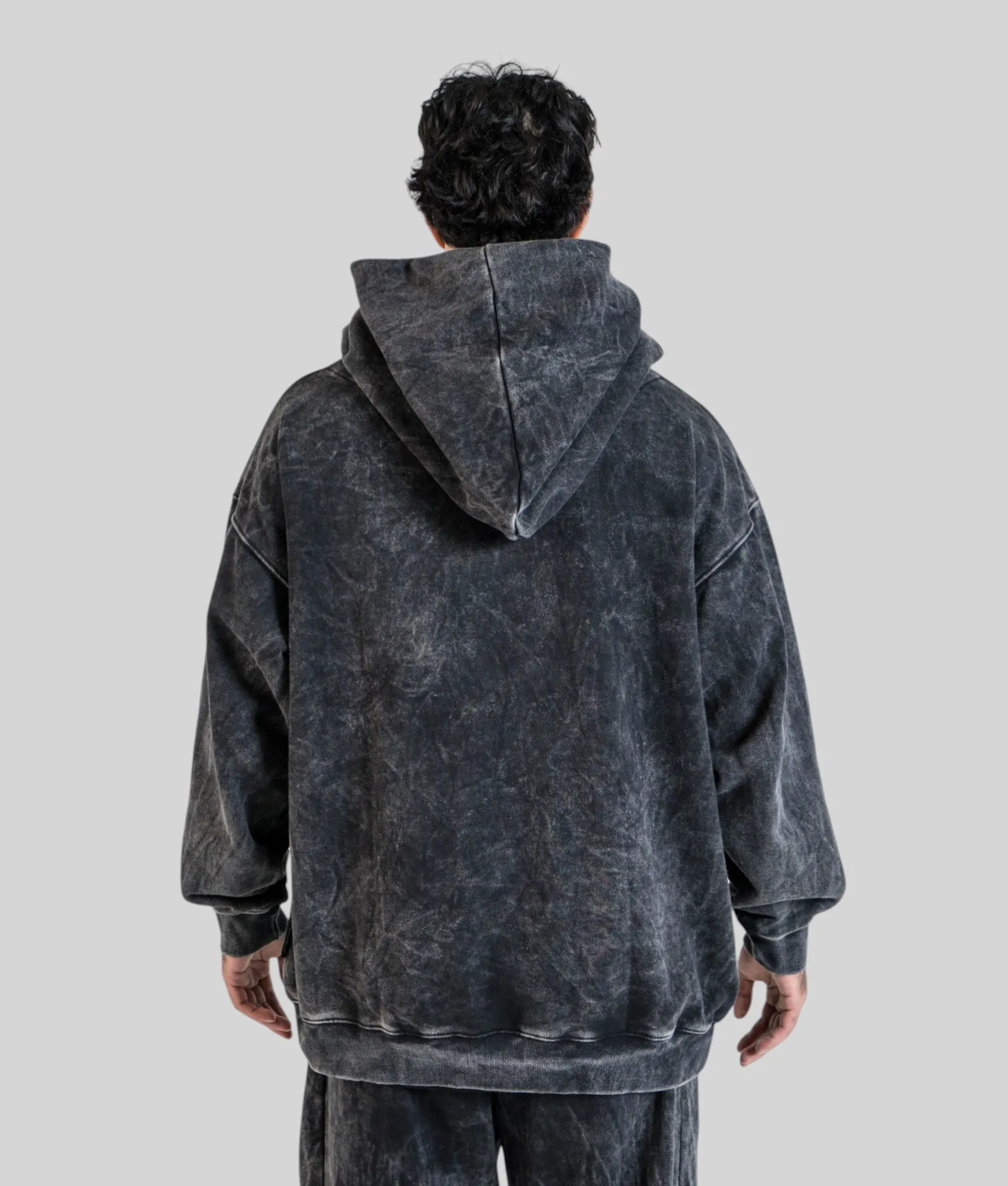 Same Semi‑Tall Hoodie fit, different attitude. This washed black version isn’t just a dark hoodie — it’s been hit with a acid wash effect that gives every piece its own unique character. The kind of finish that looks like it belongs in a premium streetwear drop, not a tall men’s range. But here we are.
